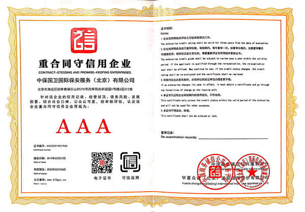 中保國衛國際保安服務(北京)有限公司,屬中保國衛集團旗下子公司。能全方位的為大型客戶提供優質的安保、押運服務,是集人防和技防于一體的新型正規化綜合安保押運服務企業,提供人防、物防、技防、聯網報*、非武裝押運等安防相關的一站式服務。